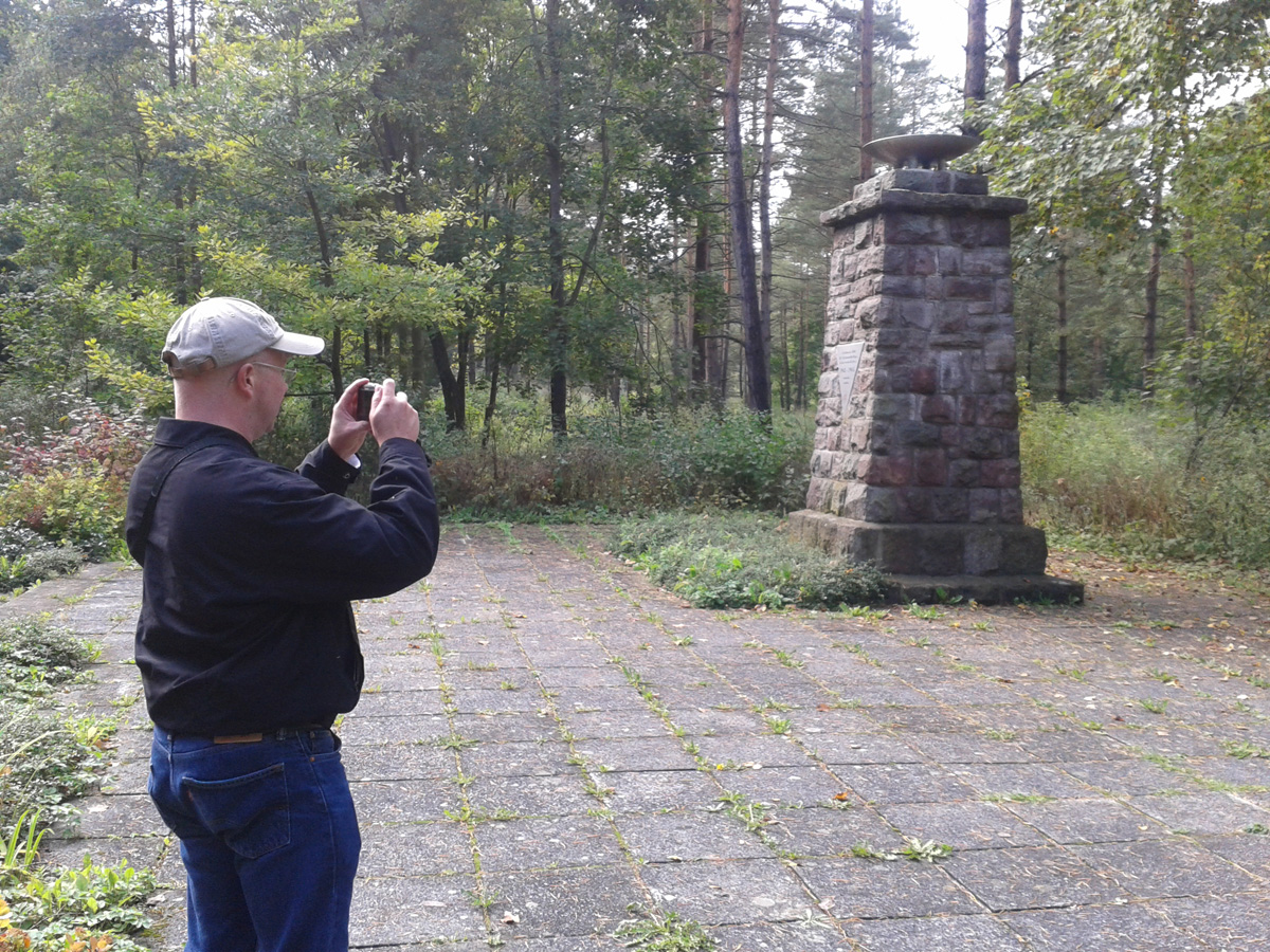 Er äußerte den Wunsch mehr über die Geschichte des Sonderbauvorhabens zu erfahren und die Örtlichkeiten zu besuchen. Diesen Gefallen erfüllten wir ihm gern. Bereits am Morgen besuchte er mit Genehmigung und Begleitung der Bundeswehr den Truppenübungsplatz und somit das Gelände, auf dem Sein Großvater als Mitglied der 89.Infantriedivision an der Befreiung des Konzentrationslagers Ohrdruf teilgenommen hatte. Im Anschluss kam er in unser Dokumentationszentrum. Hier informierte ihn Georg Ribienski über die Geschichte des Sonderbauvorhabens, das Schicksal der Häftlinge und über die Baustelle im Jonastal.