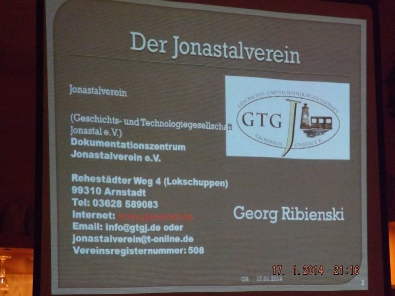 Am 17.01.2014 um 20.00 Uhr fand im „Kur und Lese Café“ Friedrichroda ein Fachvortrag zum Thema „SIII-Was bauten die Nazis im Jonastal wirklich?“ statt. Die Veranstaltung war völlig ausverkauft, es gab eine Warteliste, schließlich startete der Vortrag vor 43 Zuschauer. Veranstalter und Partner bei diesem Vorhaben war Carsten Göthel, der selber in historischen Dingen, insbesondere in der Geschichte Thüringens und Friedrichrodas sehr bewandert und engagiert ist. Das Kur & Lesecafe gehört seiner Frau Patricia. Vergleichbare Veranstaltungen gibt es dort schon seit sieben Jahren und Georg Ribienski stand da in der Tradition sehr interessanter und teilweise hochkarätiger Vorgänger.