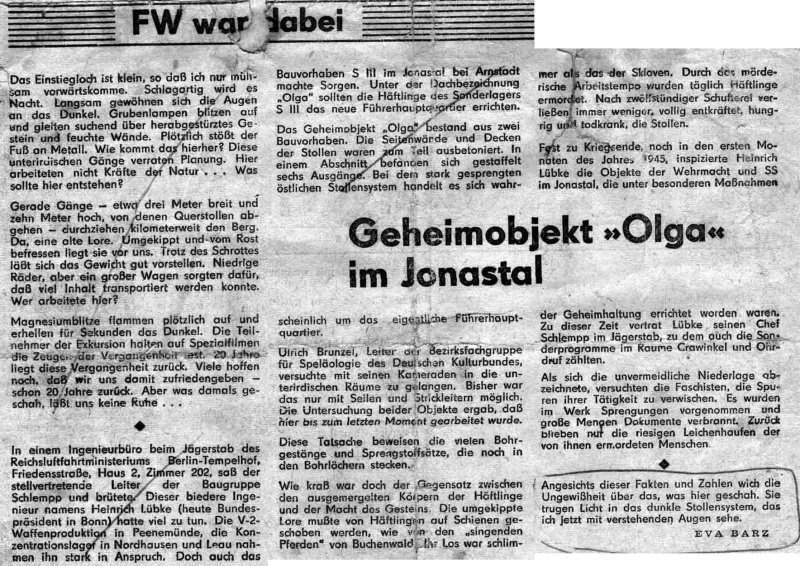 Einer der wenigen Zeitungsartikel über Erkundungen in den Stollen,
