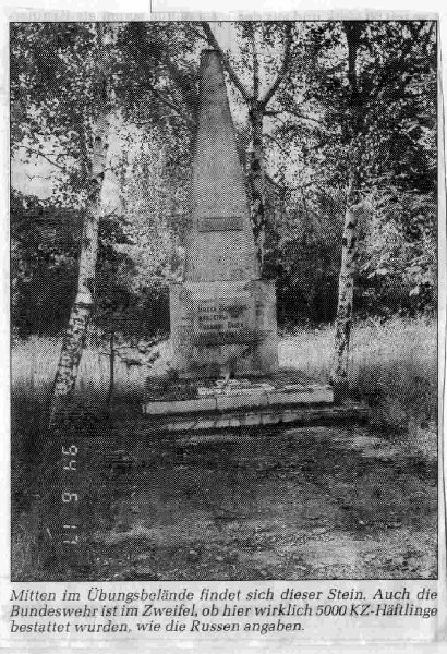 FOLGE 6: Während feststeht, daß die Häftlinge aus dem Lager Crawinkel vornehmlich beim Stollenbau im Jonastal, die aus dem Zeltlager Espenfeld beim Brücken- und Wegebau zum Einsatz kamen, konnte bis heute nicht geklärt werden, wo die Häftlinge des Nordlagers zu Tode geschunden wurden. Oberst Zeigert, bis Dezember 1994 Kommandeur im Verteidigungsbezirk 71 und damit auch zuständig für den Truppenübungsplatz Ohrdruf, hat sich sehr verdient gemacht bei der Erforschung der Geschichte des Platzes, zweifelt aber ebenso, schon wegen der räumlichen Entfernung, den Einsatz der Häftlinge des Nordlagers im Jonastal an. Es kann nicht Aufgabe dieser Serie sein, die Greuel wiederzugeben, die hier angerichtet wurden. Andere Publikationen, wie auch mein Buch „Rätsel Jonastal“ (Vh, Links Verlag Berlin 1992) haben das bereits in einem gewissen Umfang getan. Zur Feier der Landesregierung anläßlich des 50. Jahrestages der Befreiung vom Faschismus, zu der ehemalige Häftlinge gleichermaßen wie amerikanische Soldaten und Offiziere eingeladen sind, wird es so manches Wiedersehen geben. Viele der Veteranen sind verstorben, die meisten erinnern sich nach einer relativ so langen Zeit kaum noch an Details, die heute von großem Interesse sind. Bundeswehr und Bundesvermögensamt sind so für jeden Hinweis dankbar, der es ermöglicht, die über 20 Massengräber auf dem Truppenübungsplatz genau bestimmen und die Zahl der hier Beigesetzten erfassen zu können. 50 Jahre sind seit den Apriltagen 1945 ins Land gezogen.